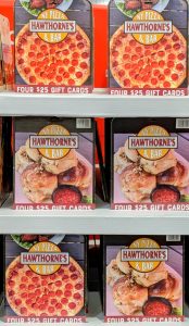 Gift Cards are a fantastic gift and you can find Hawthorne’s gift cards on sale at COSTCO now. But if you wait too long, you’ll be out of luck Pizza lovers. Costco switches inventry to national chains during the holiday season.