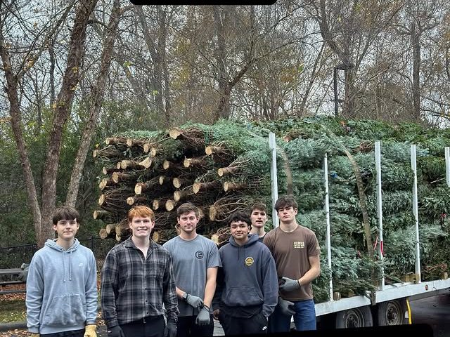 Strapping strong Elves delivered fresh cut trees from the mountains of West Jefferson in Ashe County in time for ThanksgivingElves have been super busy making beautiful wreaths too.