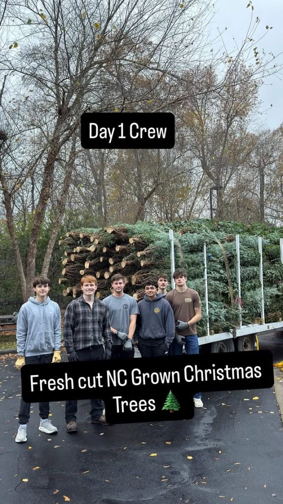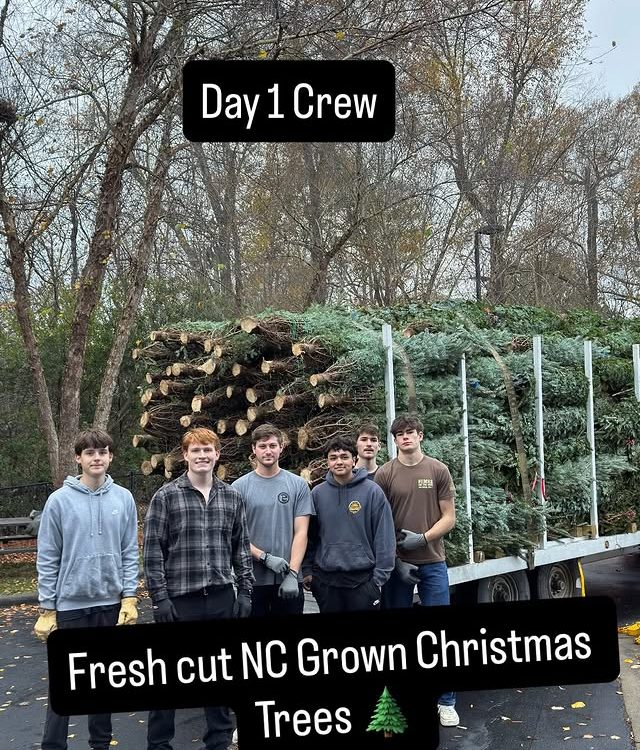 Strapping strong Elves delivered fresh cut trees from the mountains of West Jefferson in Ashe County in time for Thanksgiving! Elves have been super busy making beautiful